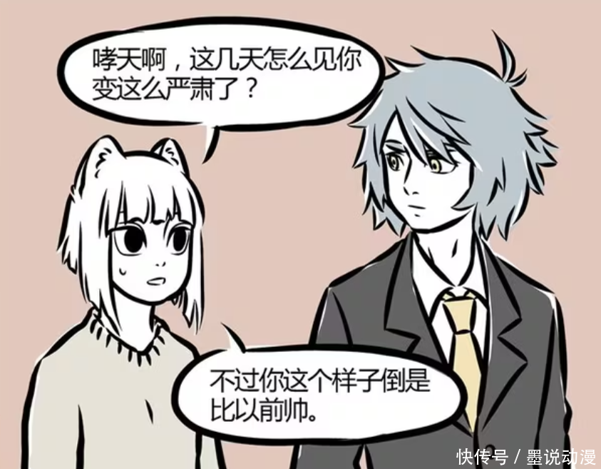 哮天深广形象便是不拘细节,神经很大条那种东谈主。不外几天没见,九月发现哮天变得帅气。再一次穿上西装打上领带,看来又要等杨戬出现。九月底本也心爱哮天,只须他不启齿语言,再带点忧郁气质,九月就会被迷倒。