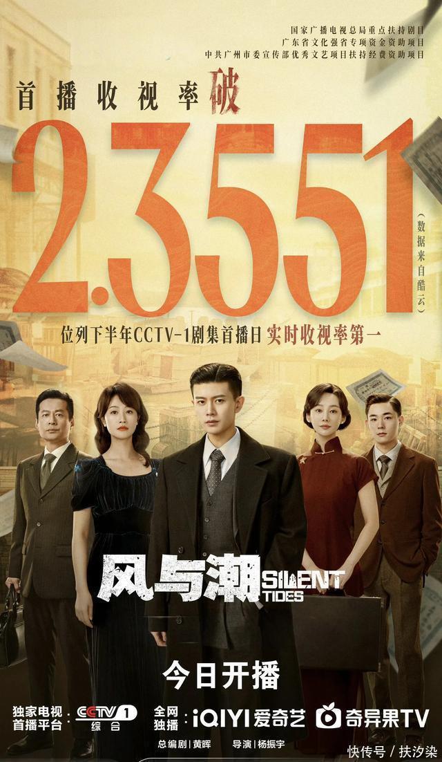 是的,《风与潮》平直拿下了央视一套近半年来的首日收视率第一。