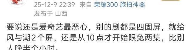 播出工夫晚是一方面,如故唯独无二的晚,爱奇艺本年唯有这一部剧在晚上10点才转免。 追剧日期出来后,粉丝第一工夫向平台维权,关连词船到抱佛脚迟,平台耳旁风。