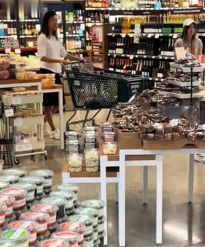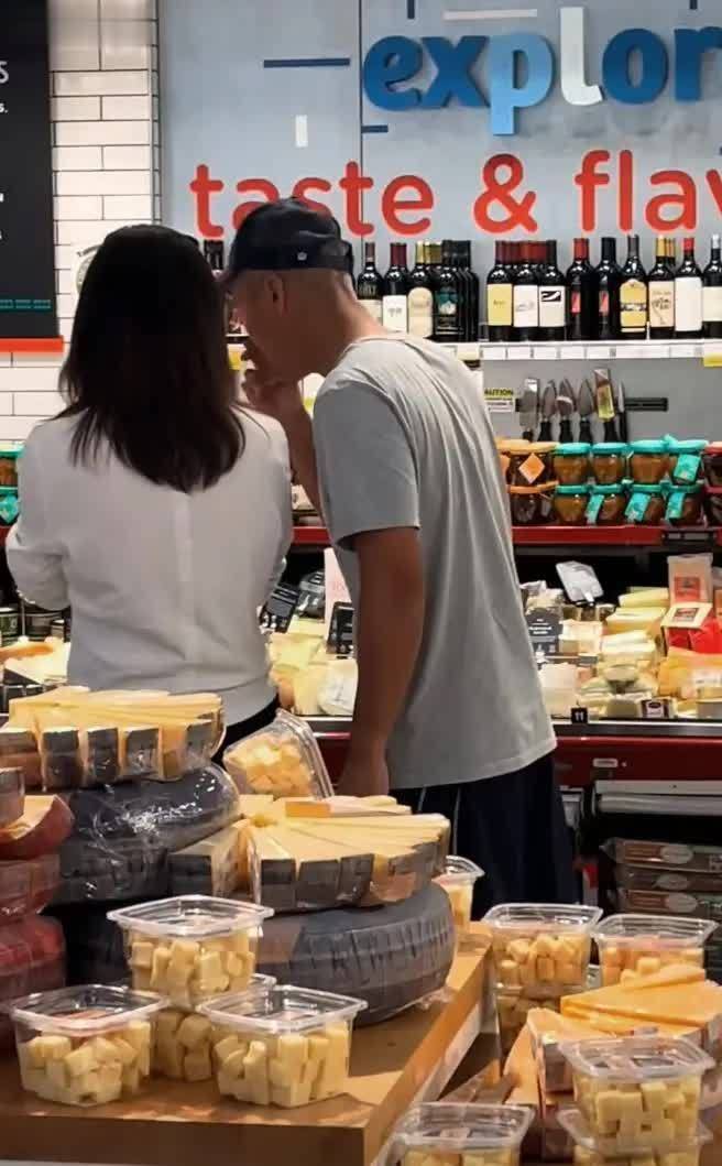 这天徐静蕾身穿白色上衣,留着中发,从背影看变胖了不少,整个东谈主显得十分壮实。黄立行的躯壳倒是没多大变化,衣服灰色短袖戴着玄色帽子也十分接地气。两东谈主站在食品货架旁,徐静蕾提起了一个食品不雅看,黄立行则在她操纵说着什么。