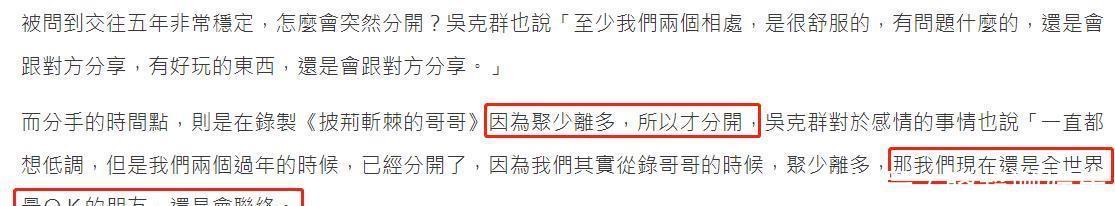 但可惜的是,俩东说念主亦然因为齐要顾及行状聚少离多照旧莫得走下去。