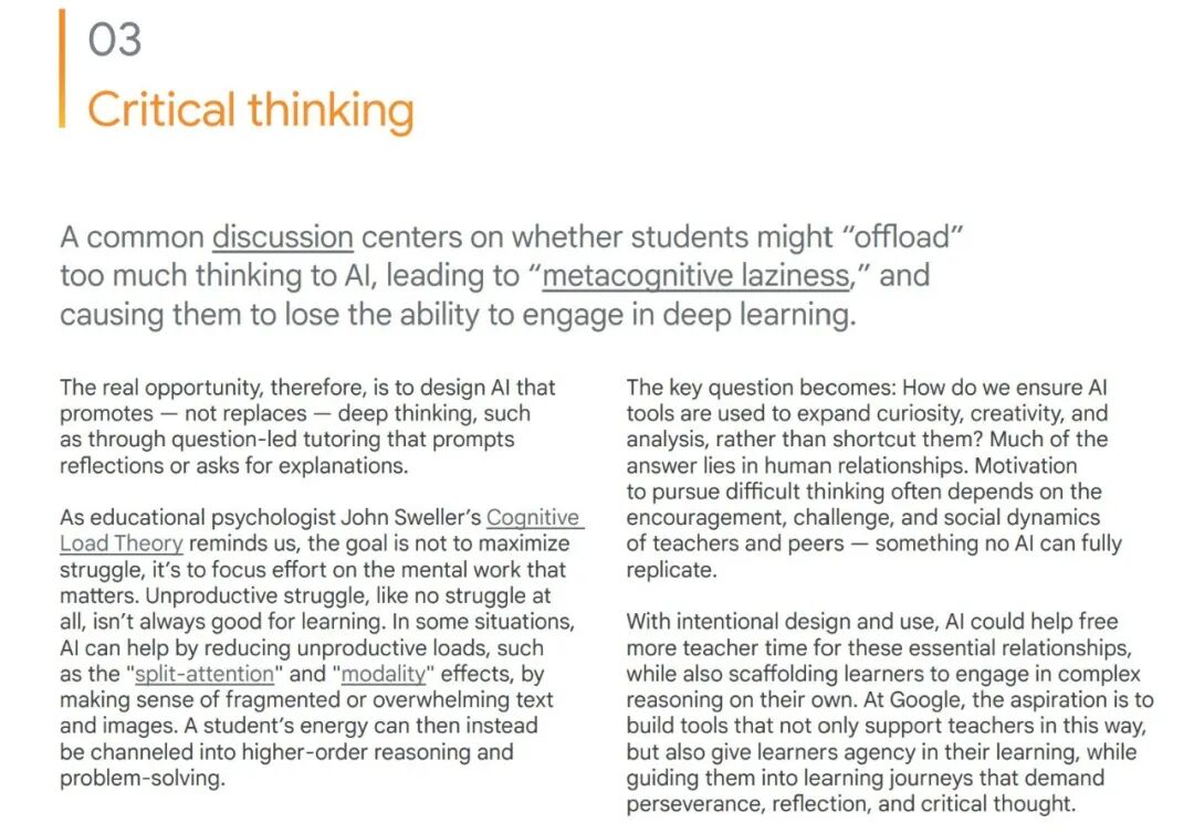 谷歌在敷陈中建议,教师变革不成只是依赖单一用具,而是要构建一个竣工的学习生态。敷陈的亮点不在于某个具体功能,而在于把学习“拆解”成一个竣工体系,并给出“从旨趣到实践”的闭环。