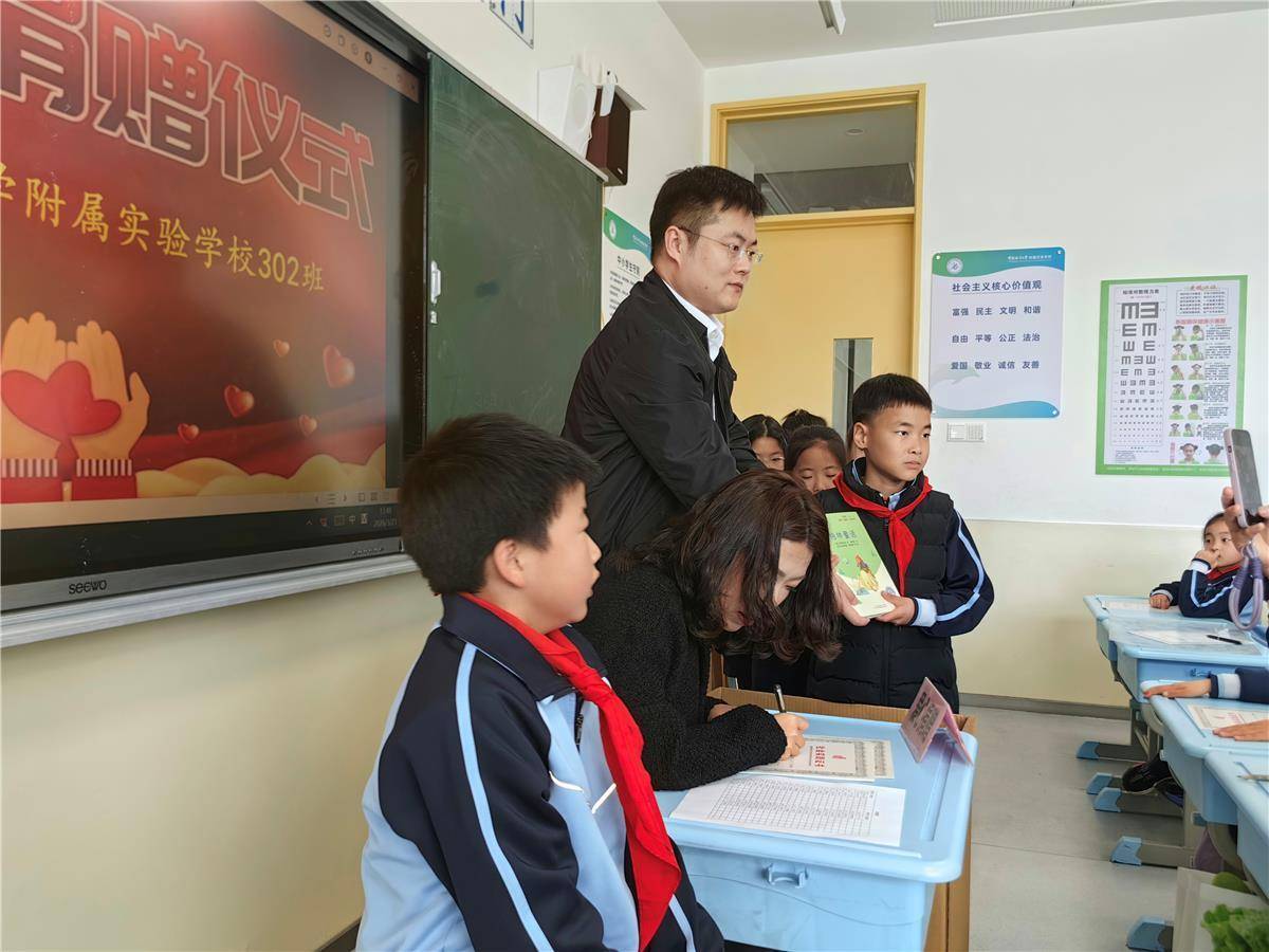 行径着手,班主任向同学们先容了本次行径的公益伙伴——民盟青岛市社会组织委员会副主任、“同明书坊”首创东谈主王程祥,民盟盟员、山东文康讼师事务所高档搭伙东谈主于大千,以及为本次行径提供职业的志愿者,并论述了青岛民盟多年来深耕乡村西宾的暖心故事,以及“青盟护航·鸽子树防守花开”公益技俩在东西部配合中的病笃趣味趣味,让同学们清澈感受到学雷锋不是一句标语,而是实确实在的社会推论与遭殃担当。